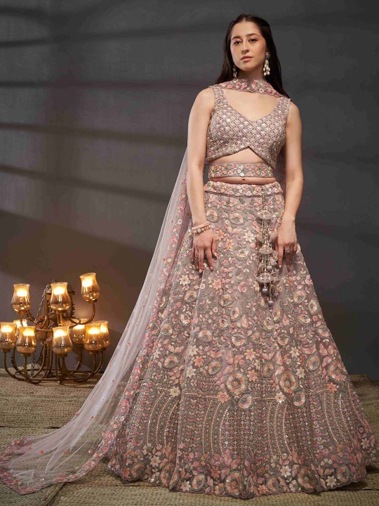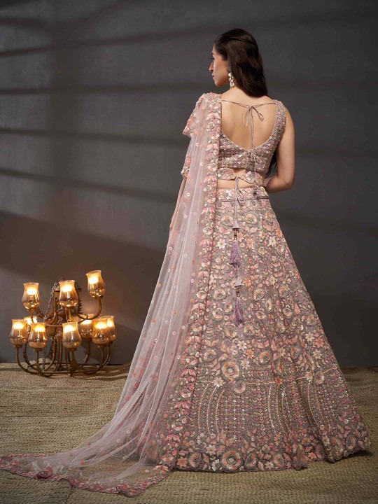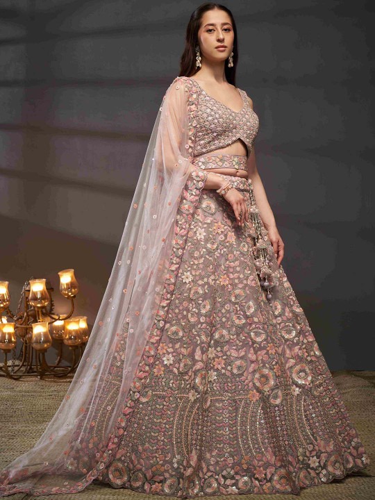 Mauve and pink embroidered lehenga choli with dupatta, sequinned